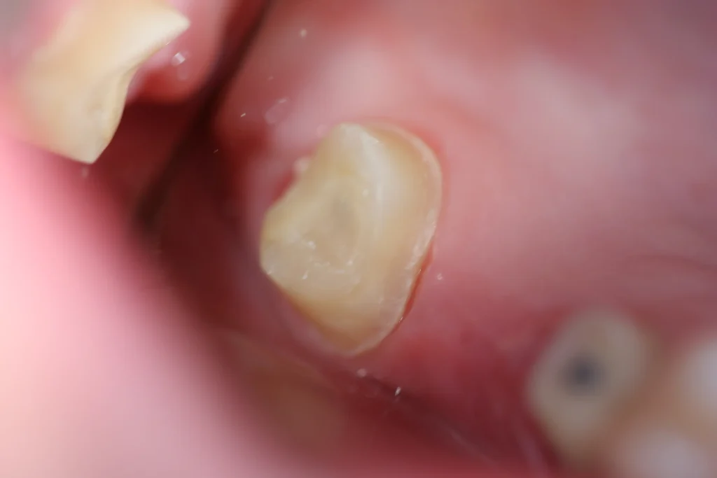 При осмотре стало понятно, что ситуация не самая простая. Соседние зубы уже были депульпированы, а в области отсутствующего зуба костной ткани практически не было.