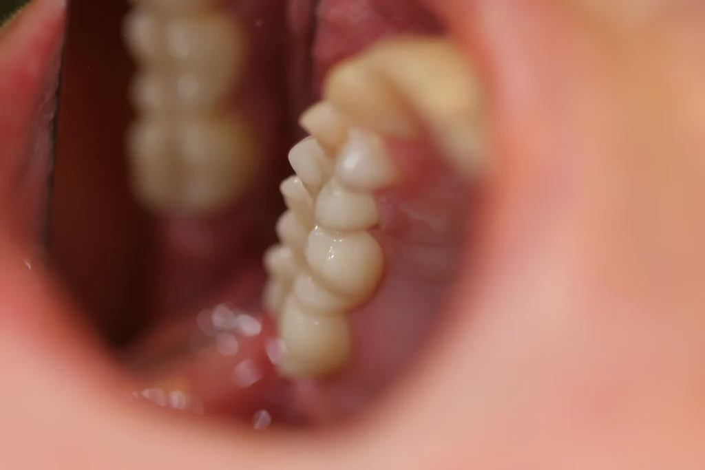 Техник восстановил анатомическую форму зубов, контактные пункты и жевательную поверхность. Конструкция получилась естественной и хорошо вписалась в прикус пациентки.